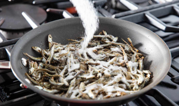 A. 멸치를 찬물에 2~3분 담갔다가 체에 밭쳐 물기를 빼고 사용하면 염분이 줄어듭니다.