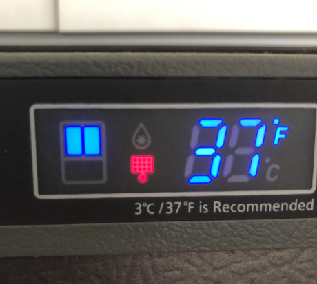 가끔 무심코 조작해 온도 설정이 바뀌는 경우가 있습니다. 냉장실은 3~5℃, 냉동실은 -18℃ 정도로 맞추면 무난합니다.