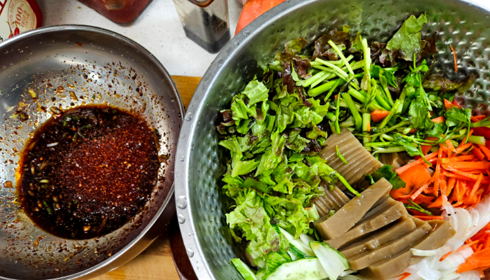 도토리묵 손질과 채소 준비 방법