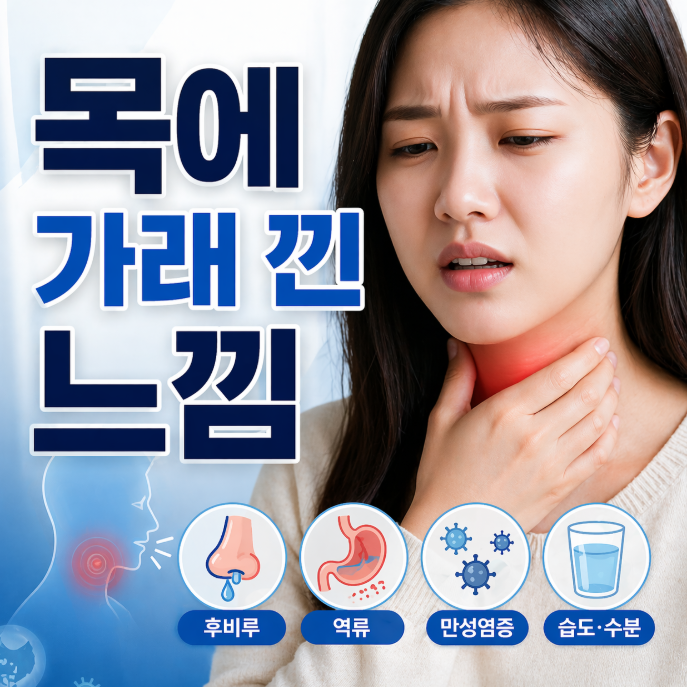 목에 가래가 붙어 있는 느낌은 단순 감기가 아니라 후비루, 역류성 인후염, 만성 비염 등 다양한 원인으로 발생합니다. 특히 “뱉어도 안 나오는데 계속 있는 느낌”이라면 실제 가래가 아니라 점막 문제일 가능성이 높습니다.