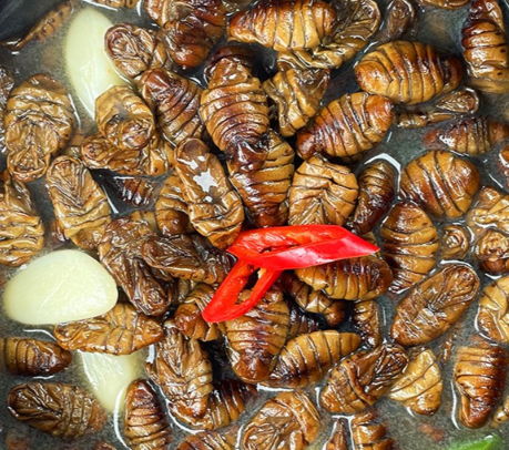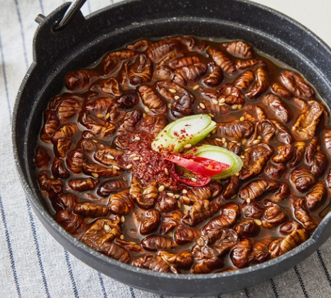 번데기는 주로 누에나방의 유충으로, 고단백 저지방 식품으로 알려져 있습니다.