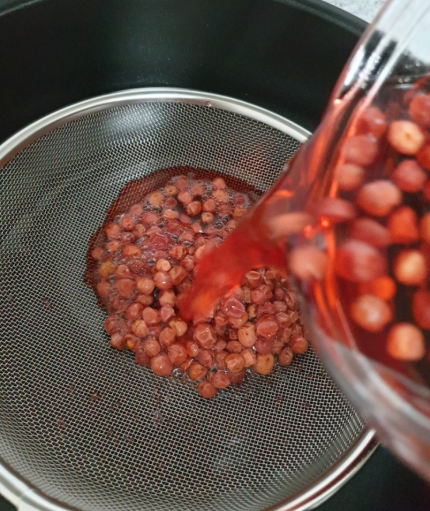 먼저 오미자를 깨끗한 물에 여러 번 헹궈 불순물을 제거합니다. 이후 체에 밭쳐 물기를 완전히 제거해야 합니다. 물기가 남으면 곰팡이가 생길 수 있으니 주의하세요. 그늘에서 2~3시간 정도 충분히 말려줍니다.