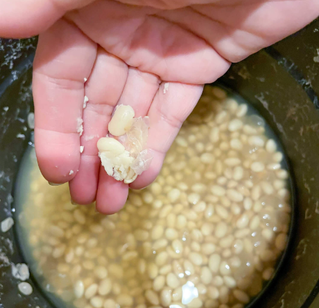 콩을 깨끗이 씻어 불순물을 제거한 뒤, 여름철에는 냉장고 안에서 8~12시간 정도 충분히 불립니다. 겨울철에는 실온에서 불려도 괜찮습니다.