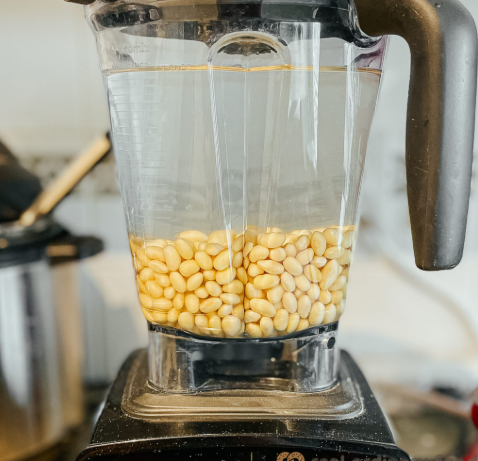 믹서기에 삶은 콩과 찬물(비율 1:3)을 넣어 곱게 갈아줍니다. 곱게 갈수록 식감이 부드럽습니다. 저는 한 번 갈고 체에 내린 뒤, 다시 한 번 갈아 더 곱게 만드는 방식을 선호합니다.